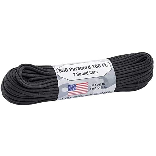 Paracord & Seil, ÜberlebensausrüstungAtwood Rope MFG 550 Paracord-Fallschirmschnur mit 7 Strängen und Nylon-Fallschirmseil, außen, Überlebensausrüstung, hergestellt in den USA, Schlüsselbänder, Griffwickel, Schlüsselanhänger (schwarz)