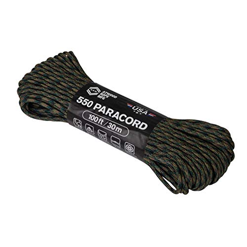Atwood Rope MFG 550 Paracord-Fallschirmschnur mit 7 Strängen und Nylon-Fallschirmseil, außen, Überlebensausrüstung, hergestellt in den USA, Schlüsselbänder, Griffwickel, Schlüsselanhänger (schwarz)