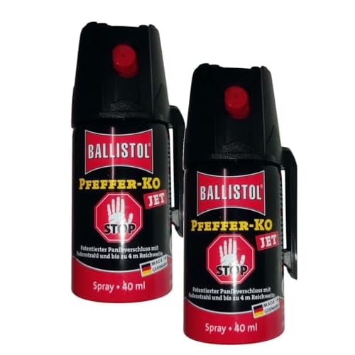 BALLISTOL 24430 Pfeffer-KO Jet 50ml Spray – Verteidigungsspray gegen Tiere – Abwehrspray 5m Sprühweite – Panikverschluss