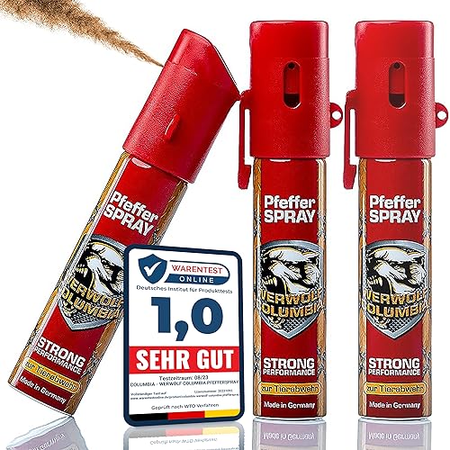 Familien Set 3 x Werwolf Columbia Pfefferspray für Sie und Ihn Verteidigungsspray Pfeffer Spray Breitstrahl 3 x 20ml – Made in Germany – bis zu 1,5 m herausragende Reichweite