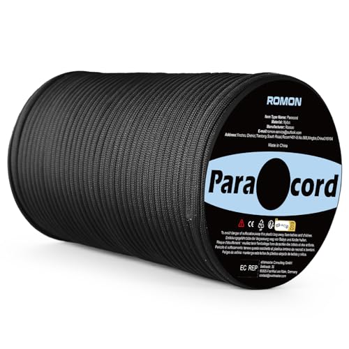 Paracord & Seil, ÜberlebensausrüstungRomon Paracord 4mm, 100M Paracord Schnüre Seil 9 Kern-Strängen Paracord Bänder, Schnur Reissfest Seil Sonnensegel, Nylon Paracord Survival Paracord Reepschnur für Outdoor Survival Camping, Schwarz