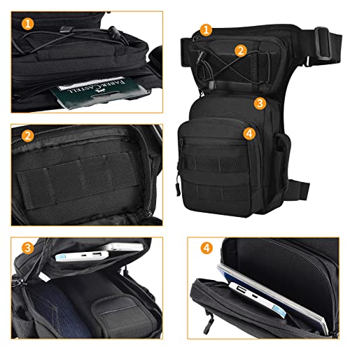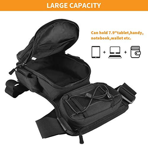 ♥【Struktur】Angemessenes Design für einfachen Zugriff Die taktische Oberschenkel-Packtasche mit angehängtem Sandwich-Rücken, 5 Reißverschlusstaschen mit vielen Fächern als perfekter Werkzeugtasche. Beinriemen können abnehmbar sein, Taille und Beinriemen mit verstellbarer Schnappverschlussschnalle als leichte taktische Beintaschen.