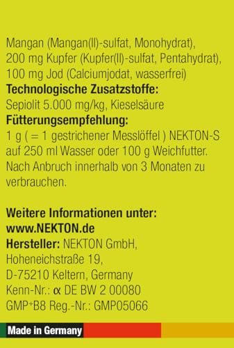 NEKTON-S enthält sämtliche lebensnotwendigen Vitamine und ist zusätzlich angereichert mit Aminosäuren, Mineralstoffen und Spurenelementen.