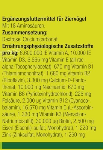 DAS BASISPRÄPARAT FÜR ALLE VOGELARTEN – Enthält alle lebensnotwendigen Vitamine, Aminosäuren, Mineralstoffe und Spurenelemente für ein langes und gesundes Vogelleben.
