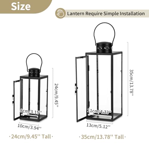NUPTIO Laternen Set Schwarz für Kerze: Metall Laterne Deko Outdoor Groß Friedhof Kerzen Wetterfest Kerzenlaterne Garten Draußen Kerzenhalter Windlicht Grablaterne Gartenlaterne 24cm&35cm