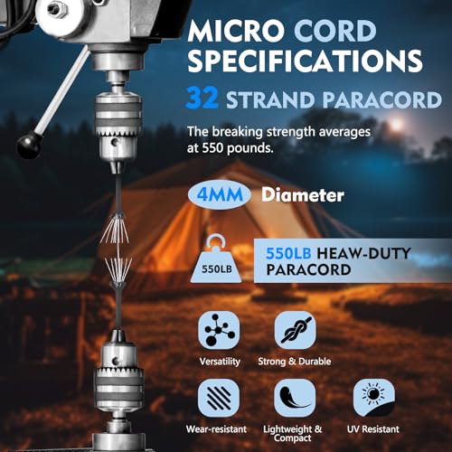 Vielseitig Einsetzbar: Als Zeltschnur zum Aufbauen von Zelten, zum sicheren Befestigen von Hängematten oder zum Aufhängen schwerer Gegenstände wie Fahrräder und Kajaks in der Garage oder im Keller. Ideal für die Herstellung individueller Accessoires: Schlüsselbänder, Armbänder, Hundehalsbänder, Schlüsselanhänger, Gürtel, Wickeläxte, Messer, Werkzeuge und andere Heimwerkerprojekte.