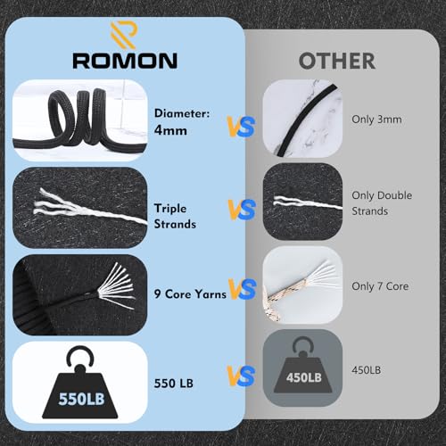 Romon Paracord 4mm, 50M Paracord Schnüre Seil 9 Kern-Strängen Paracord Bänder, Schnur Reissfest Seil Sonnensegel, Nylon Paracord Survival Paracord Reepschnur für Outdoor Survival Camping, Schwarz