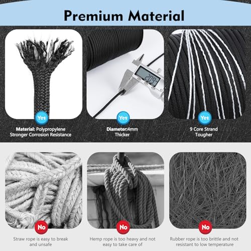 Test bis 250 KG: Das weiche, kompakte und sorgfältige Seil zeigt eine wunderbare Textur. Und es ist zuverlässig, robust und langlebig, dieses Nylonseil kann eine Bruchlast von 250 kg (550 lbs) bieten.