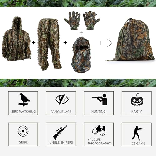 Zicac 3D Ghillie Suit Tarnanzug Dschungel Kostüm Tarnung Woodland Camouflage Anzug Dekoration Festschmuck für Jagd Camping Outdoor Militär Jagd Verdeckt