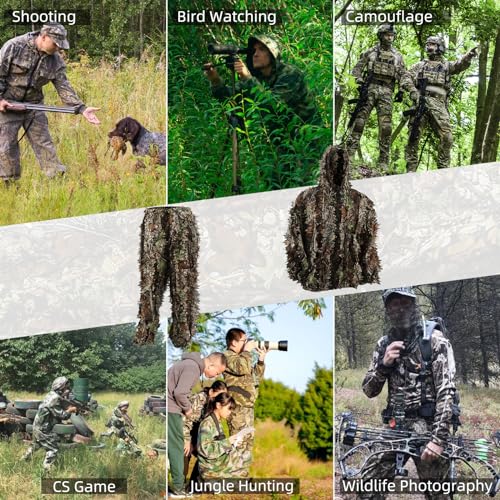 Breites Anwendungsspektrum: Ghillie Suit eignet sich für Jagd, Schießsport, Überwachung, Tierfotografie, Vogelbeobachtung, Waldkleidung, Baumhäuser, Angeln, Paintball, Airsoft, andere Tarnaktivitäten und andere Aktivitäten