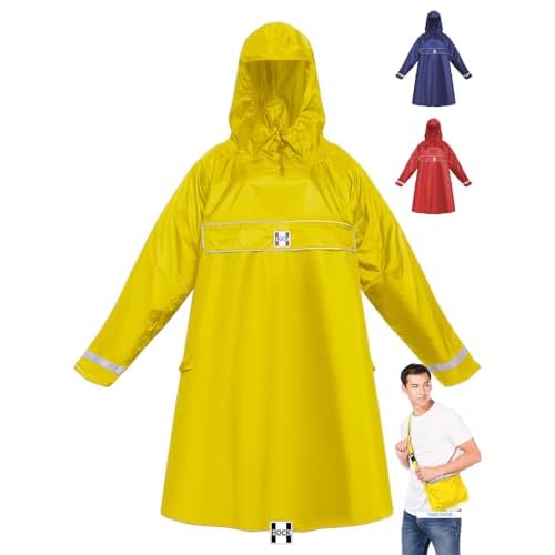 Herren Regenmantel Ultraleichte wasserdichte Lange Kapuzenmäntel mit Ärmeln Regenjacke Regenbekleidung Wiederverwendbare Regenponchos-X-Large