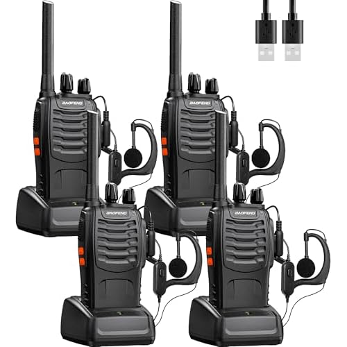 Baofeng Walkie Talkies Zwei-Wege-Funkgeräte PMR446 Radio Professionelle 16 Kanäle Gegensprechanlage Funkempfänger Sende- und Empfangsgerät,Inklusive Akku, Headset und USB-Ladestation(4 Stück)