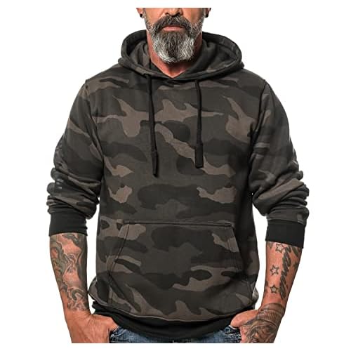 Kleidung, TarnkleidungCamouflage Kapuzenpullover Herren Urban Streetstyle Hoodie mit Kapuze Casual Kordelzug Hoody mit Taschen Vintage Streetwear Freizeitpullover Regular fit Hoodie Herren