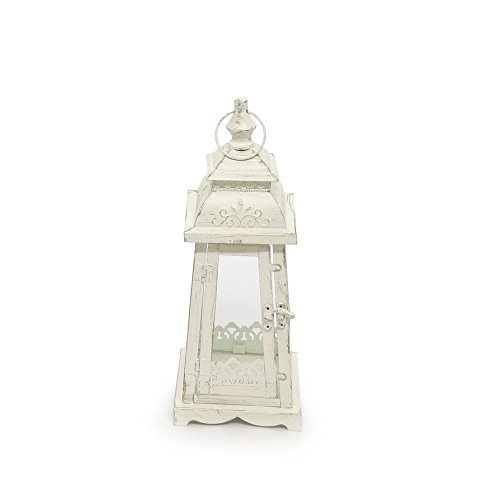 Laterne Lugano – 35cm – Deko für draußen und drinnen – aus Metall mit verzierten Echtglasfenstern – Creme-weiß