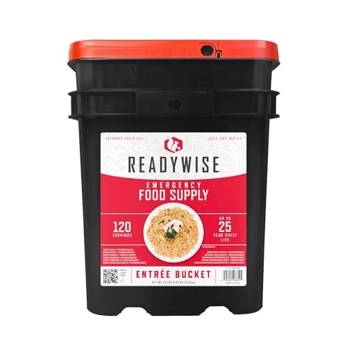 ReadyWise, 120 Portionen, Notration, Mittag- und Abendessen, Grab & Go Eimer, 13 Rezepte, Gefriergetrocknet, Langlebige Lebensmittelversorgung,Bis Zu 25 Jahre Haltbarkeit, Notfallnahrung, 14 Tage