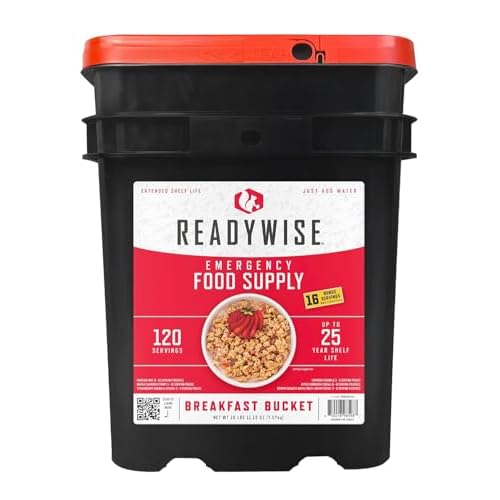 ReadyWise, 120 Portionen, Notration, Frühstück, Essensset zum Mitnehmen, 4 Rezepte, Gefriergetrocknet, Langlebige Lebensmittelversorgung, Bis Zu 25 Jahre Haltbarkeit, Notfallnahrung